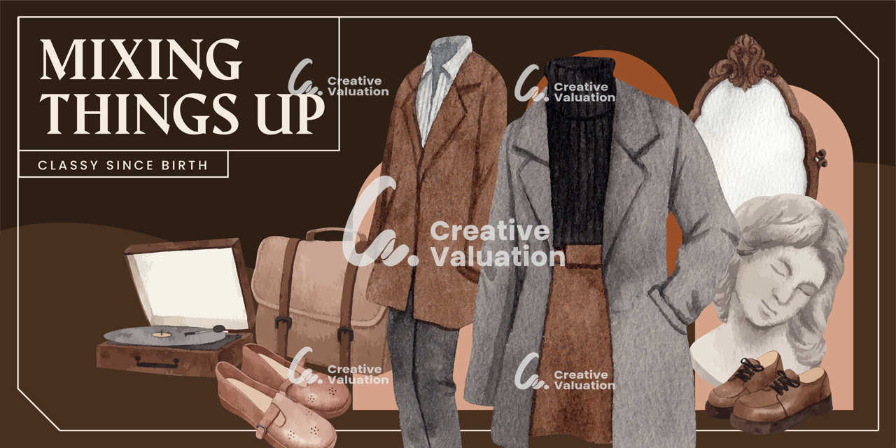 Blog header template with dark academia outfit concept,watercolor
